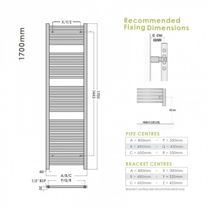 This towel rail is individually air tested at 16 bar and comes with four brackets for installation is also available with alternative colours, just select from the drop down box above the custom colour option and during the checkout process list the RAL Colour you wish.