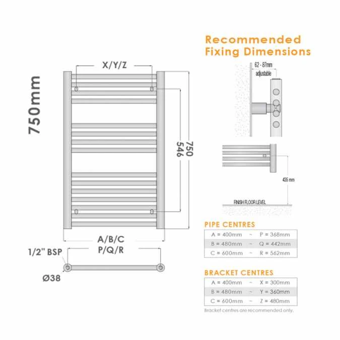 This towel rail is individually air tested at 16 bar and comes with four brackets for installation is also available with alternative colours, just select from the drop down box above the custom colour option and during the checkout process list the RAL Colour you wish.
