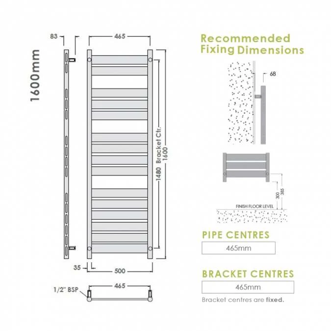 - Bracket Centre: 465mm