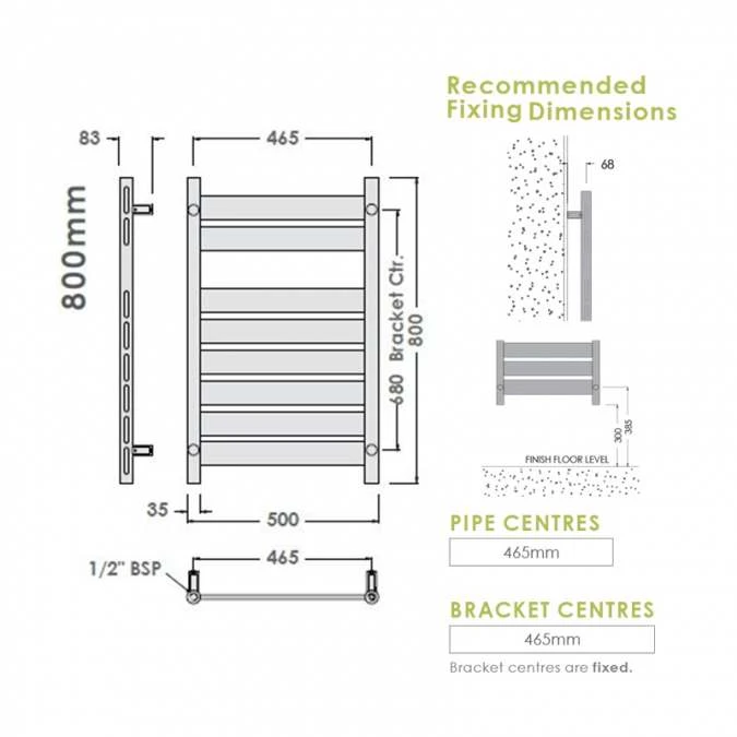 - Pipe Centres: 465mm