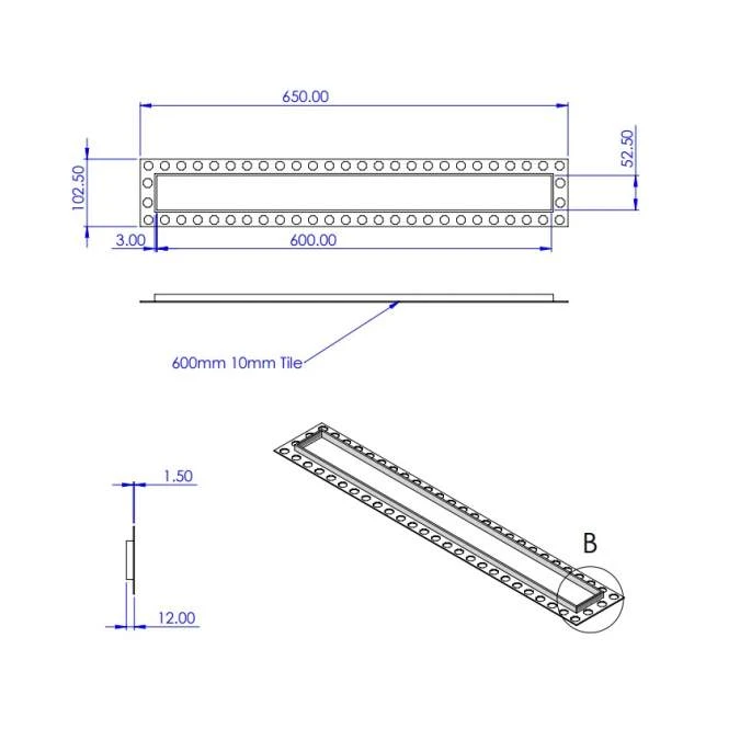 Abacus Tileable Wetroom Rectangular Shower Tray 1200 X 900 X 30 Linear 600mm End Drain