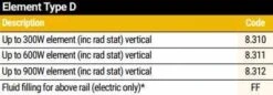 Please take note of the Element Wattage required by your choice of towel warmer to ensure the correct wattage rated element is ordered