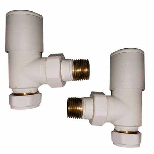 Matt White Angled Radiator Valves Suitable for EastBrook Matt White Radiators or any standard British Fitment Radiator.