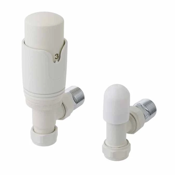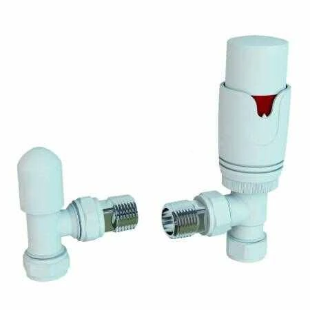 Eastbrook Angled Thermostatic Radiator Valves TRV – White – Inc Lockshield Suitable for EastBrook Radiators or any standard British Fitment Radiator.