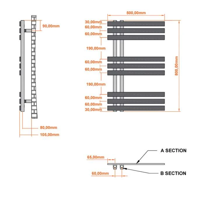 Scudo Elizabeth Designer Bathroom Towel Radiator – 500 x 800mm