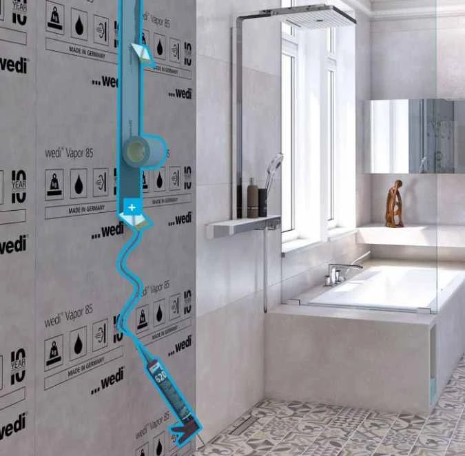 - wedi Vapor 85 building boards with vapour membrane barrier applied in the factory